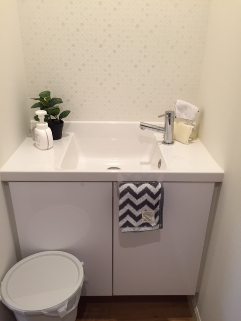 初お披露目!我が家のセカンド洗面所(※掃除用具とか置きっぱなしなのは大目に見てください。)先日レビューしたフェイスタオル早速ここで使っています!