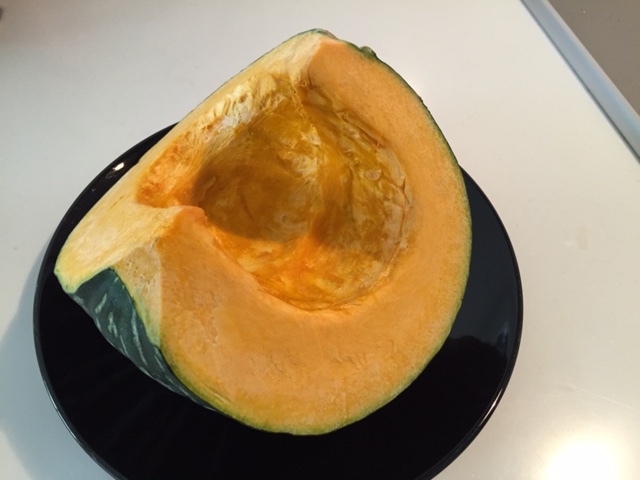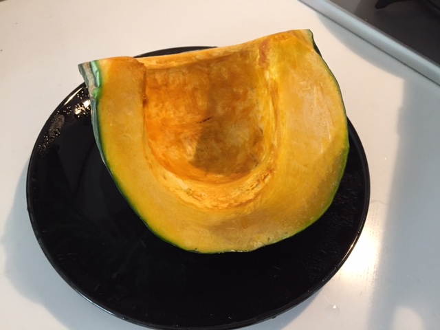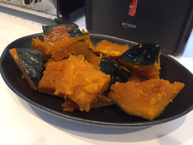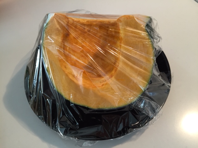 包丁が通るけど、加熱しすぎで崩れないギリギリのラインに仕上がります。(かぼちゃのサイズによって調整してください。4~5分がオススメ)