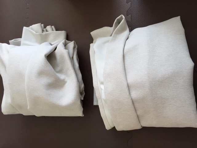 こんな風に折りたたんで、薄くてサラサラの生地なので、ネットに入れてドラム洗濯機へ。