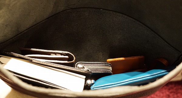 革がとても肉厚なんですが、意外になんでも入ります。