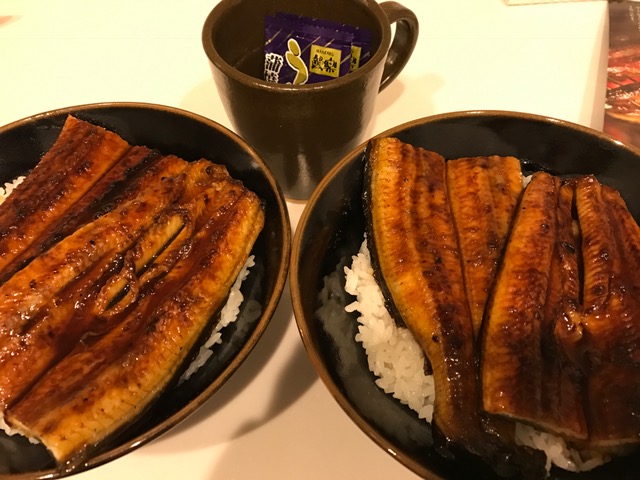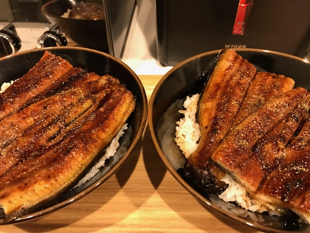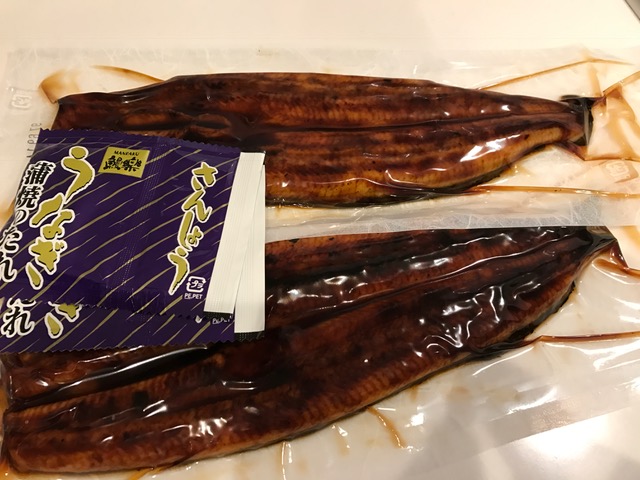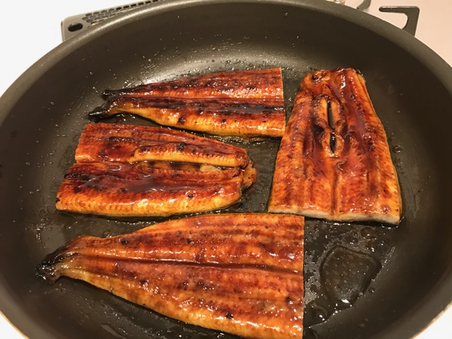 そんなこんなで・・・解凍されたうなぎ。(※結婚記念日なので、190g程度と大きいけど1人1尾ずついっちゃいましたΨ( ̄∇ ̄)Ψ)