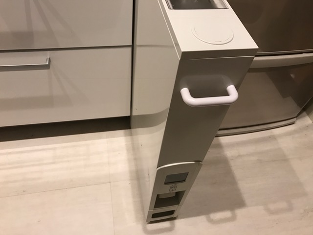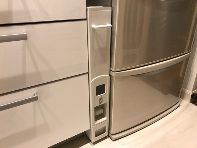 冷蔵庫の横に置く予定でしたが・・・冷蔵庫の真横だと熱効率的にどうなんだろう。お米も大丈夫かな・・・と余計な心配をしはじめてしまい、まだ収納に余裕があるので隣のユーティリティコーナーの一角に設置することにしました。