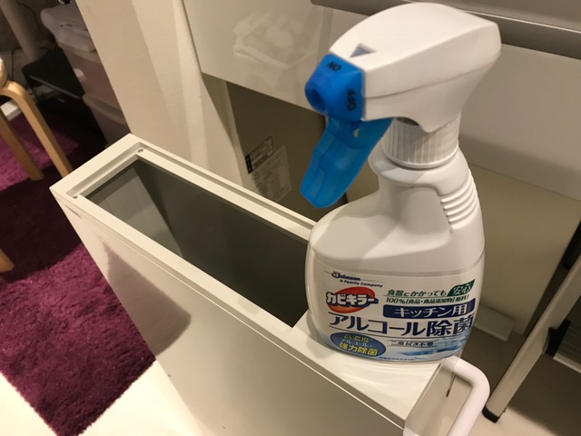 色々検討した結果、本体はアルコールティッシュ&アルコールスプレーで乗り切ることにしました。女性なら腕を入れて中全体に手が届くのではないかと思います。アルコールスプレーは、まな板やトレー・キッチンスペースの除菌などに大活躍の食器にかかっても安心なものを使いました!あとは乾いたらお米を入れて使用スタート♪