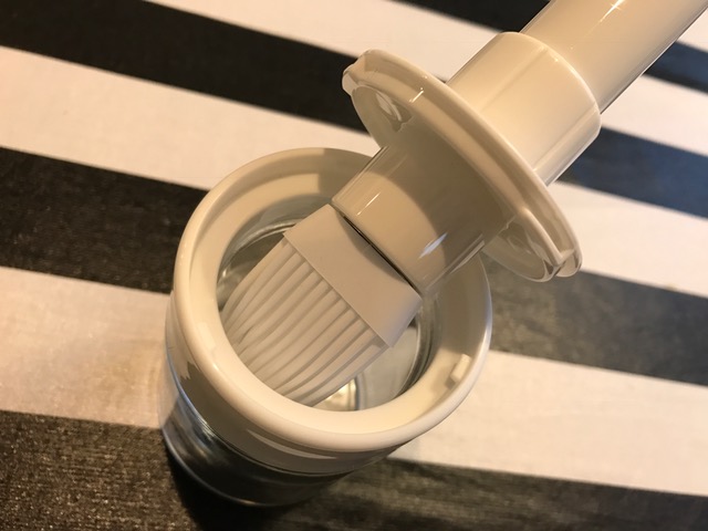 油を入れておいて、使う時にプッシュ!!ハケ部分に油をしみこませて?そのままフライパンなどに塗りぬりするだけ。とってもシンプルで便利。