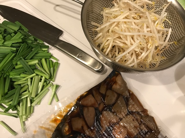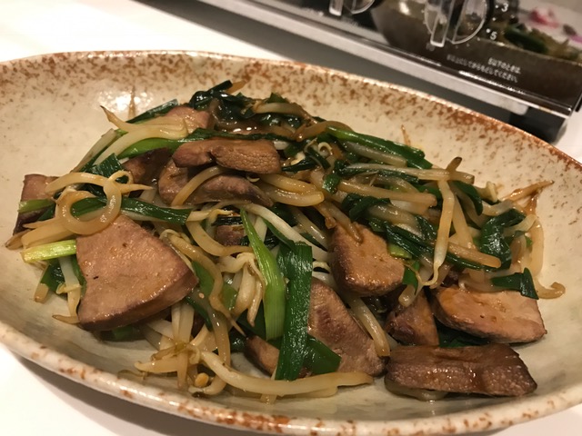 コープのレバーに、ニラともやしを加えて炒めるだけw