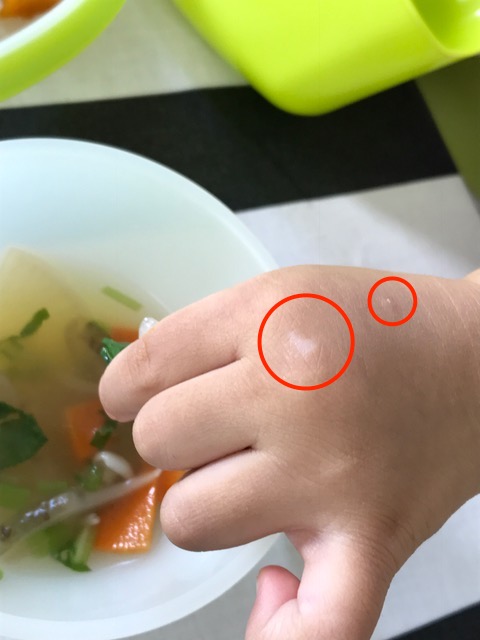先日10/30にベビごんの左手甲に三角形の白斑を発見し絶望的な気持ちになり号泣してしまったし、翌日にはさらに左足に3〜4mmの白斑と点をいくつか。右足にも2〜3mmと点をいくつか発見してさらに絶望を味わったばかり。