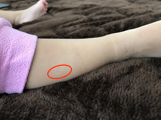 ・背中の中央部(子供の手のひら大)→白斑ではないとのことなので、今日で治療終了。
